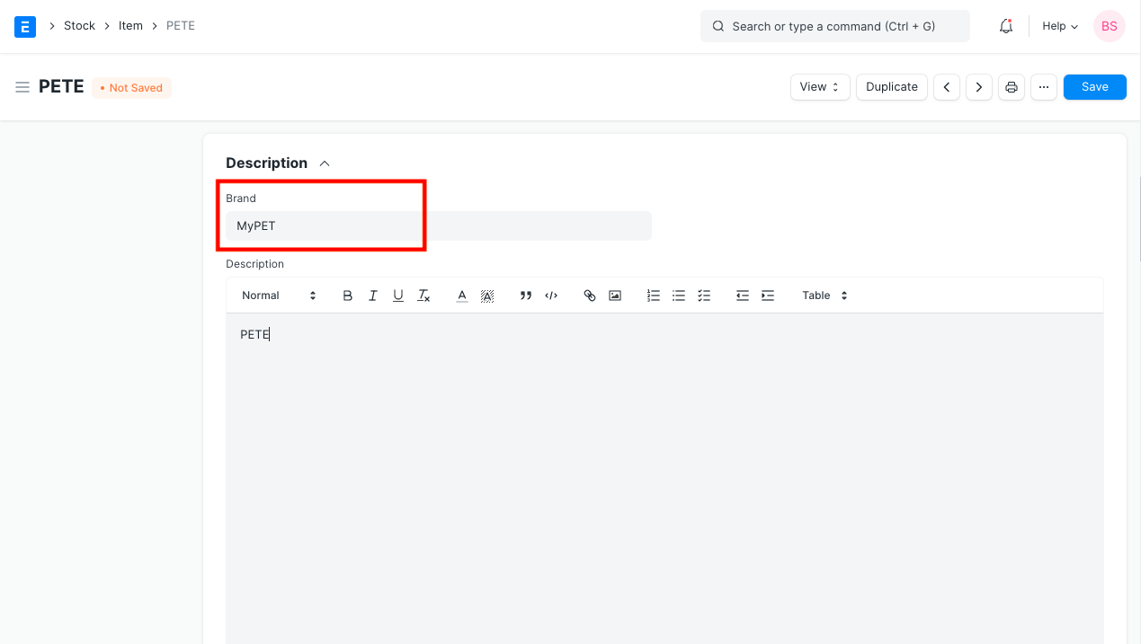 Enter a Brand name and enter a description if needed.