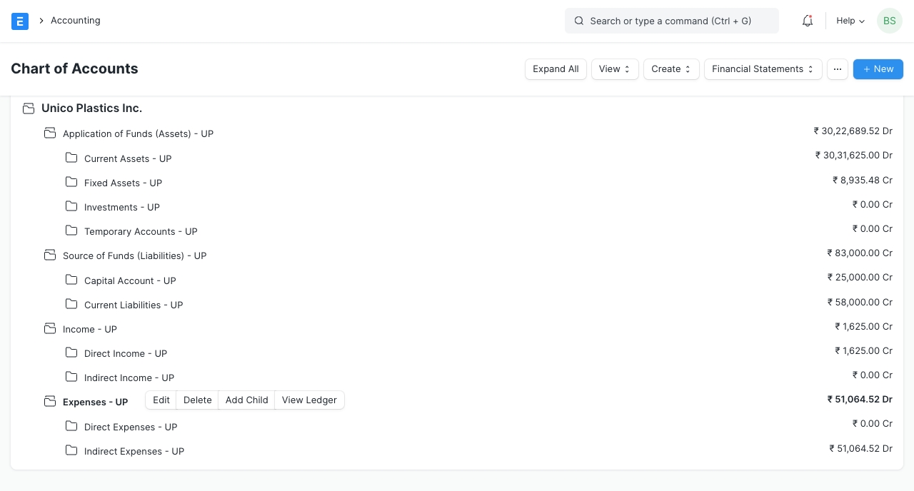 To access the Chart of Accounts list, go to: > Home > Accounting > Accounting Masters > Chart of Accounts