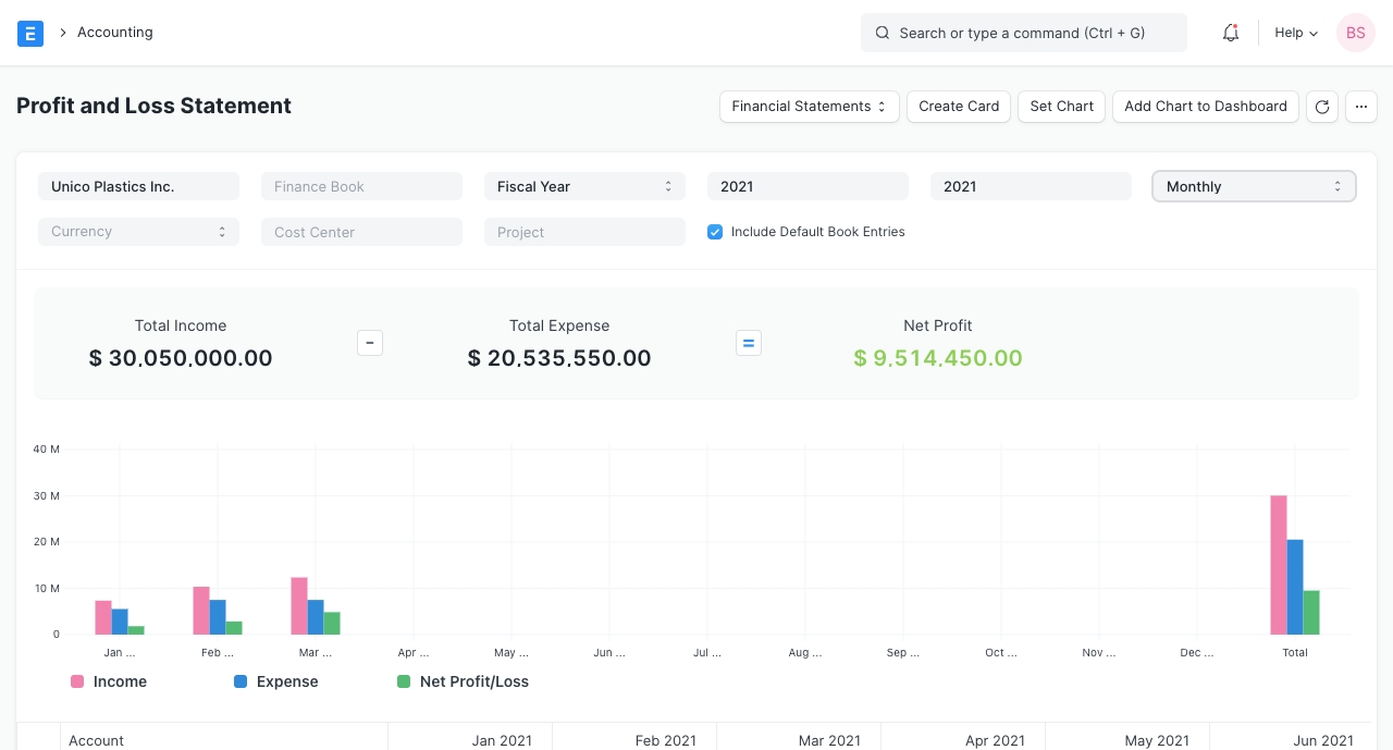 In ERPNext it is easy to keep track of Profit and Loss via the Profit and Loss chart.