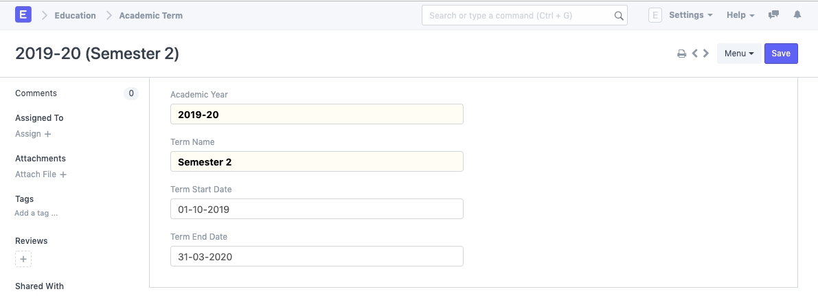 If the Academic Year has been specified in the Education Settings then it will become the default Academic Term in all the forms and will be editable if required.