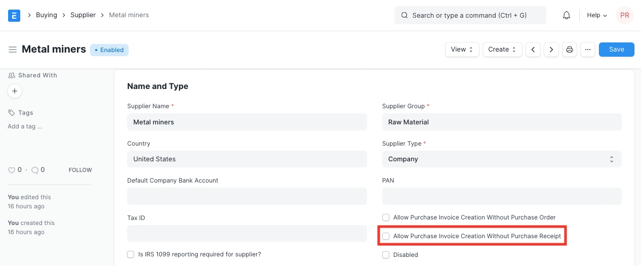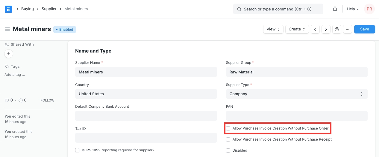 If this option is configured "Yes", Howinibs will prevent you from creating a Purchase Invoice or a Purchase Receipt directly without creating a Purchase Order first. If retail transactions are involved where the order happens offline, then Purchase Orders can be skipped. If you're accepting sample Items, you can directly create a Purchase Receipt to receive the Items to your Warehouse.