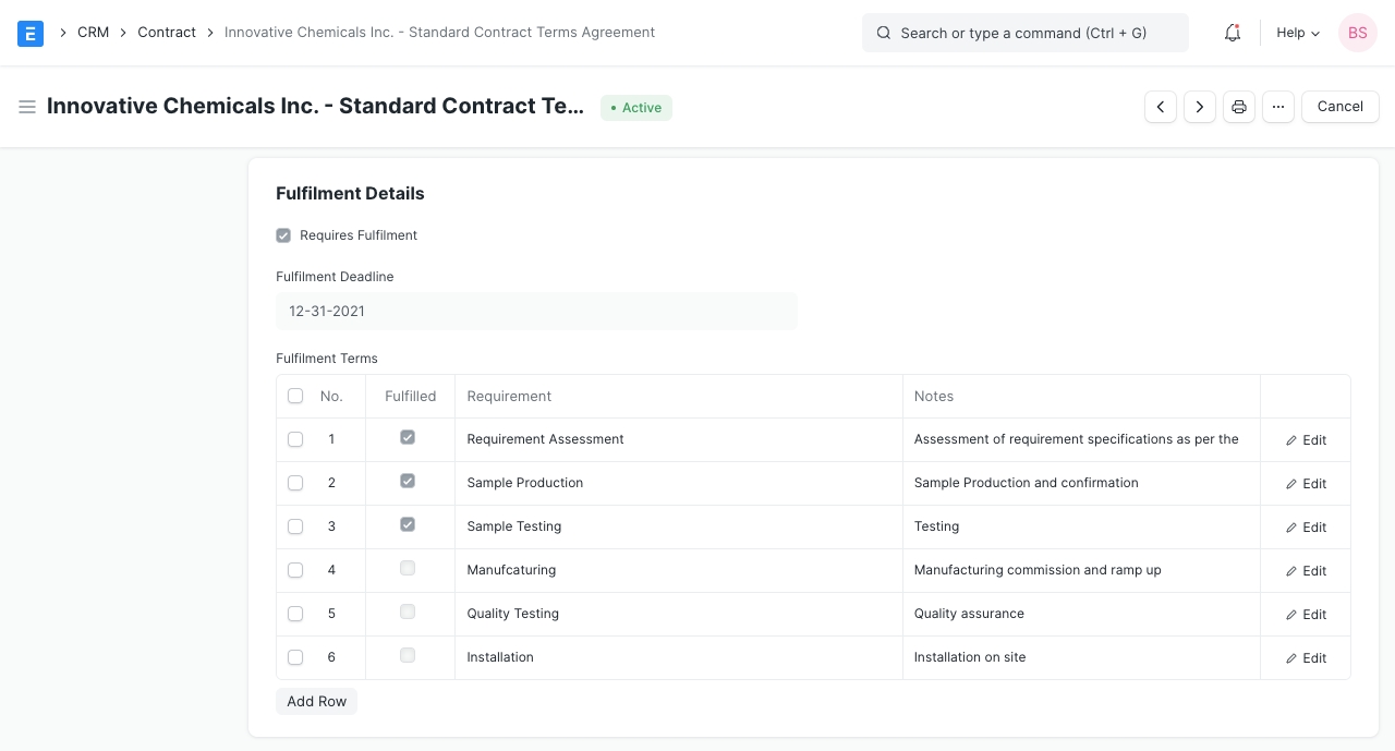 If the Contract requires some fulfilment from the Supplier's (your) end, their details can be recorded in the Fulfilment Terms table.