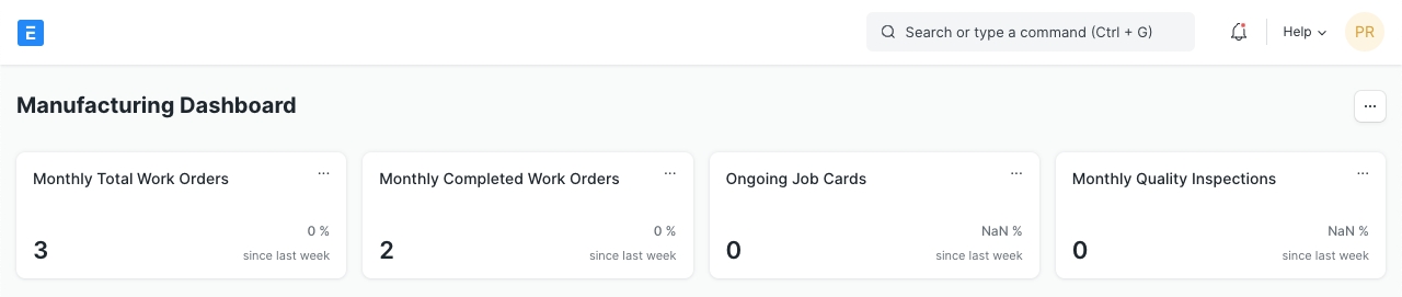 Monthly Quality Inspection :- The user will get the total count of Quality Inspection records which are in the Submitted state. The Work Orders created one month before the current date will be displayed in the number card.