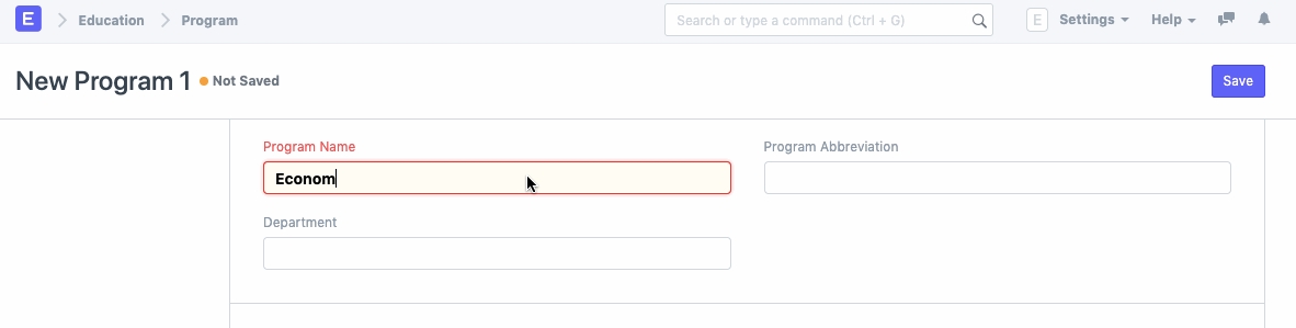 Enter the Program Name and the Program Abbreviation.
