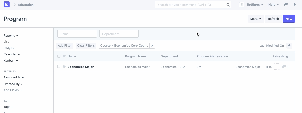 For example, Economics Major would be a Program taught at an institution that will have various courses within.