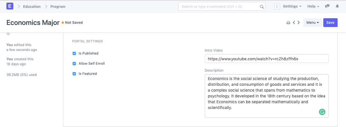 Allow Self Enroll: Once this box is checked, the students/applicants would be able to enroll themselves for the program on the portal.