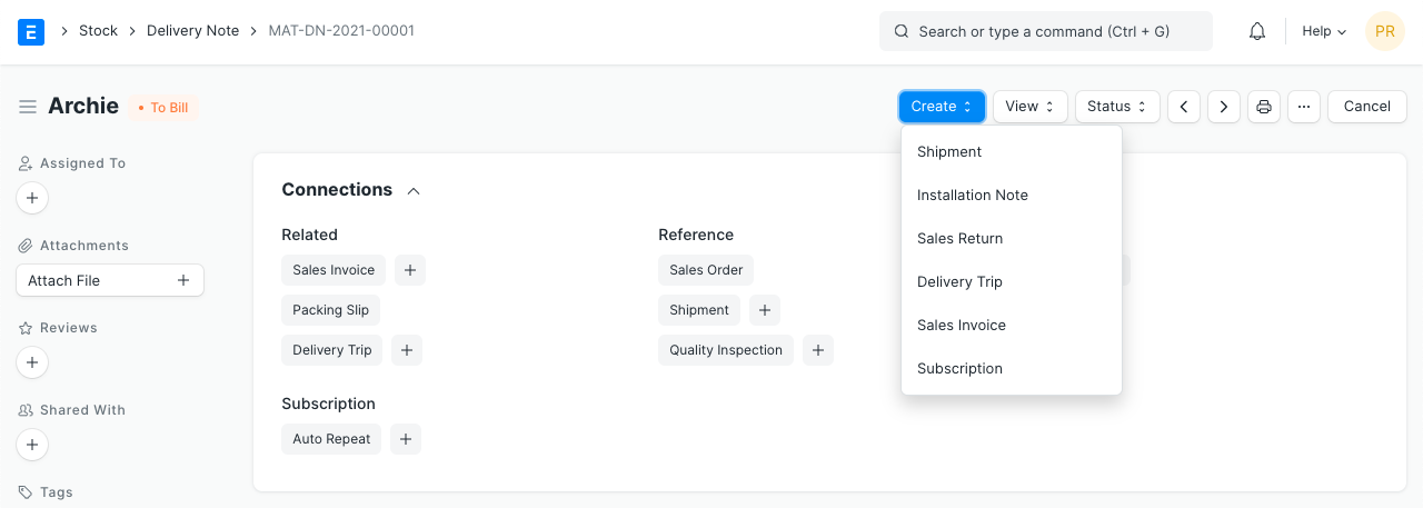 The Delivery Note can be linked to the following for tracking purposes: