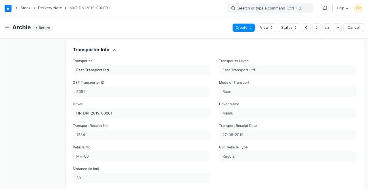 The Transport Receipt Date and Driver Name will be fetched.
