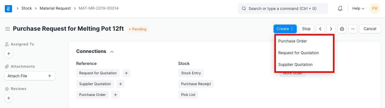 > Info: Material Request is not mandatory. It is ideal if you have centralized buying so that you can collect this information from various departments.