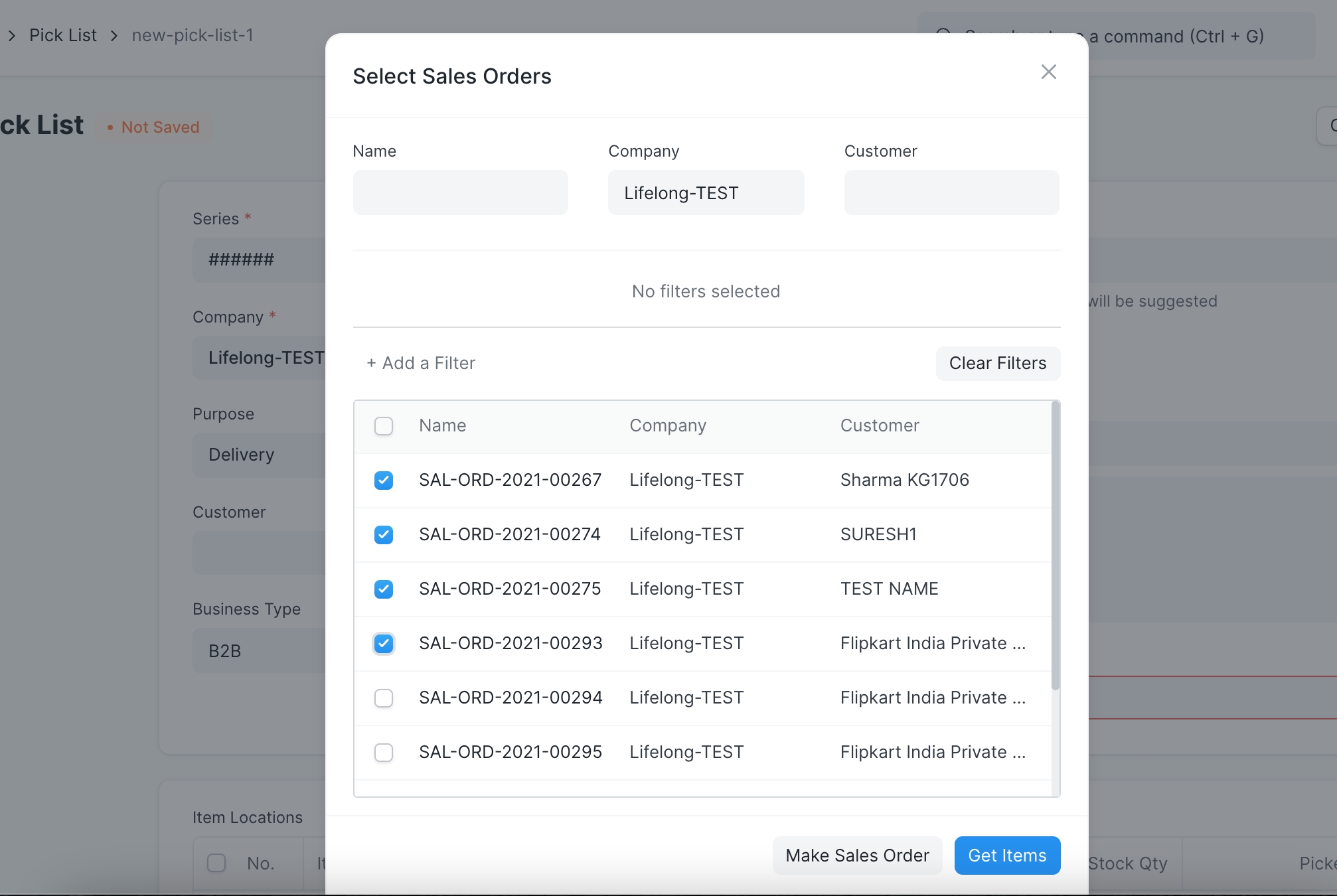 Once you click Pick List, all the data required for Pick List will be fetched from the Sales Order.