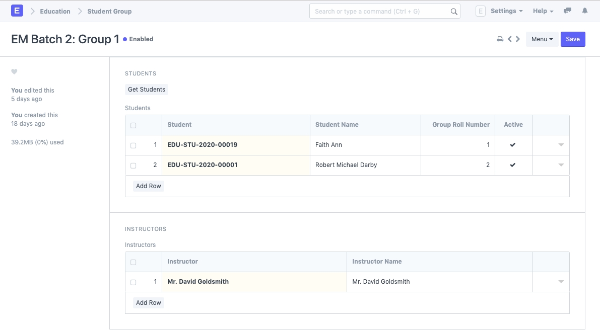 Max Strength: Enter the Maximum number of students that can be a part of this Student Group. If the number of selected students in the group is more than the Max Strength, the system will not allow you to save this group and an error will be shown.