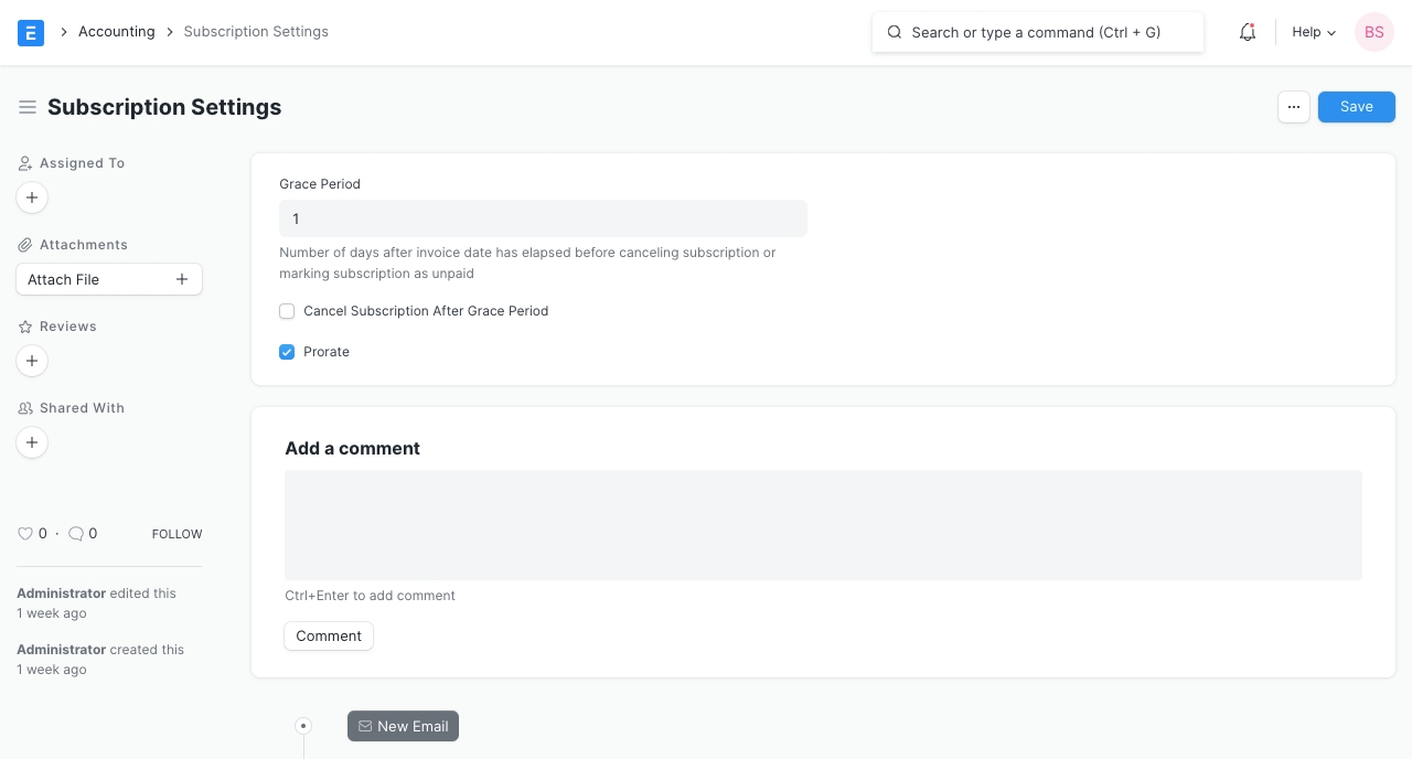 Home > Accounting > Subscription Management > Subscription Settings