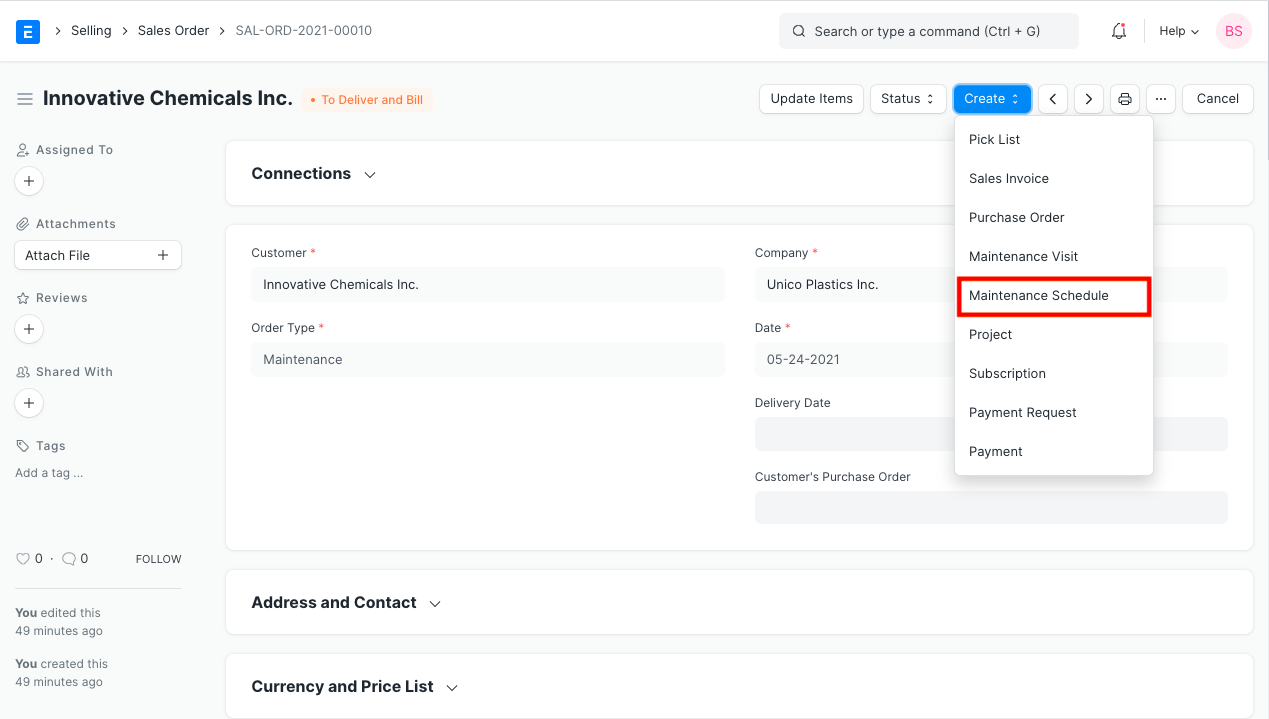 After saving, click on the Generate Schedule button to generate a Maintenance Schedule.