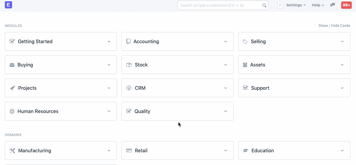 For example, if you are in the services business, you want to hide the Manufacturing Module, you can do this using this tool.