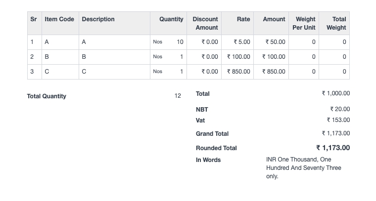 In the below example, tax NBT 2% is to be applied on sum of value of items, and then tax VAT 15%.