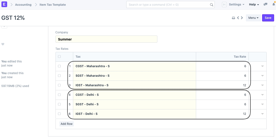 a. Create Item Tax Template for different rates and add all the GST Accounts we have created in previous step.