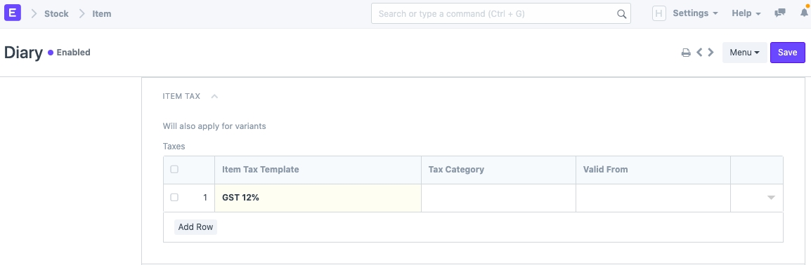After the creation of Item Tax Templates, you can start with assigning these templates to their respective Items from the Item Master.
