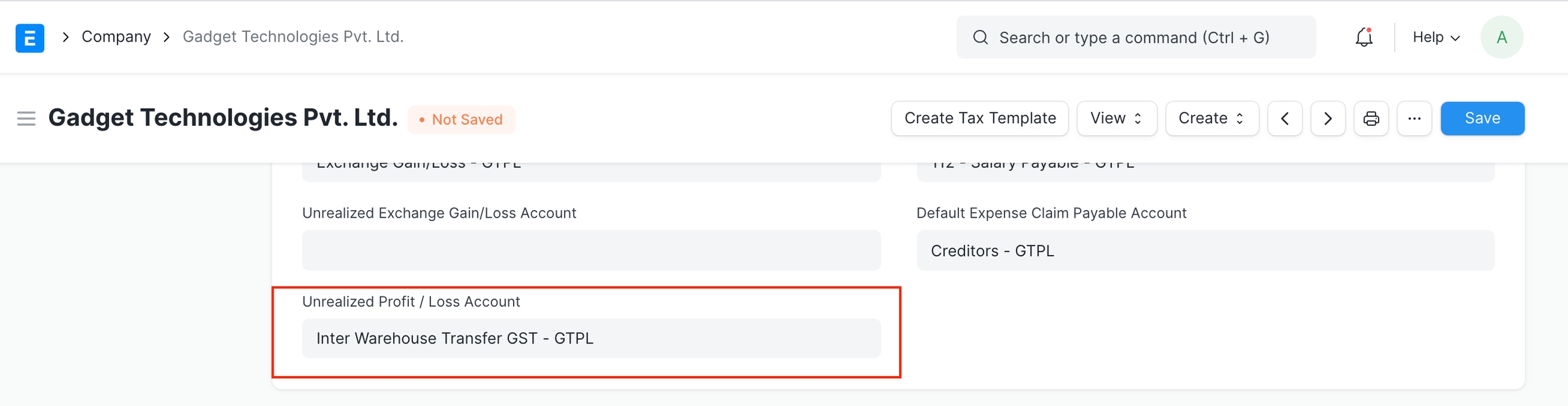 Step 1 - Add default Unrealized Profit and loss account and default In-Transit warehouse in the company master