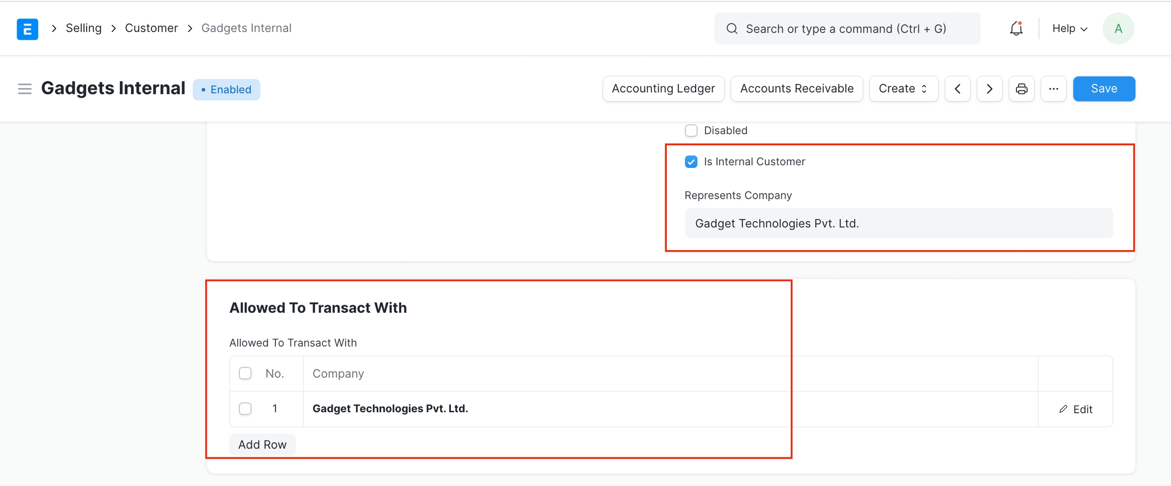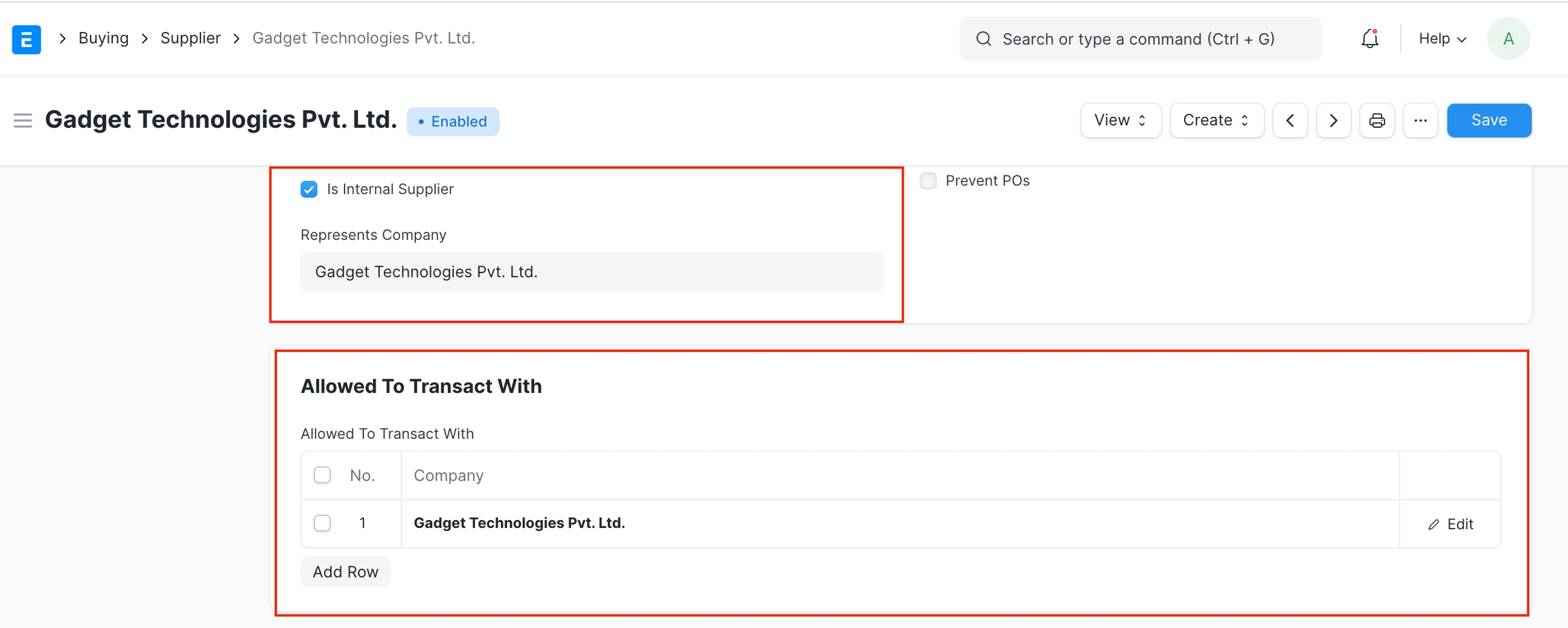 Step 2 - Create Internal Customer and Supplier and allow them to transact with the same company. Also, link appropriate address and GST details with the respective parties