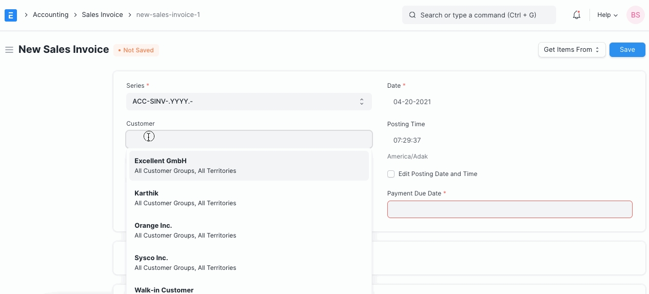 On selecting a Customer/Supplier their Billing and Shipping addresses will be fetched if saved in the Customer/Supplier master.