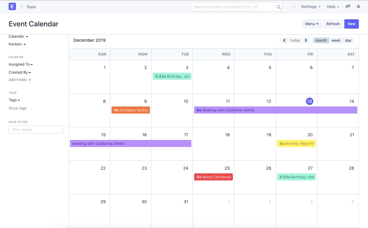 The Calendar is a Tool which helps you to create, share and keep track of events in your Howinibs account.