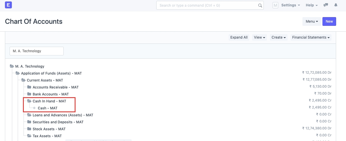 1) Create accounts under Chart of Accounts.