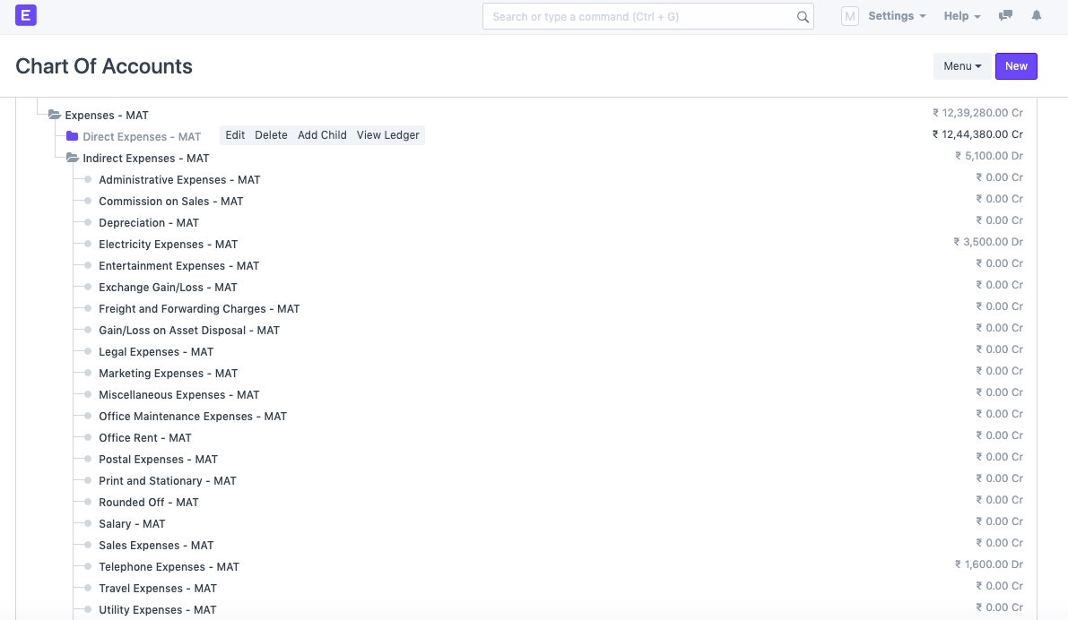 b) Expense Accounts (under Indirect Expenses)