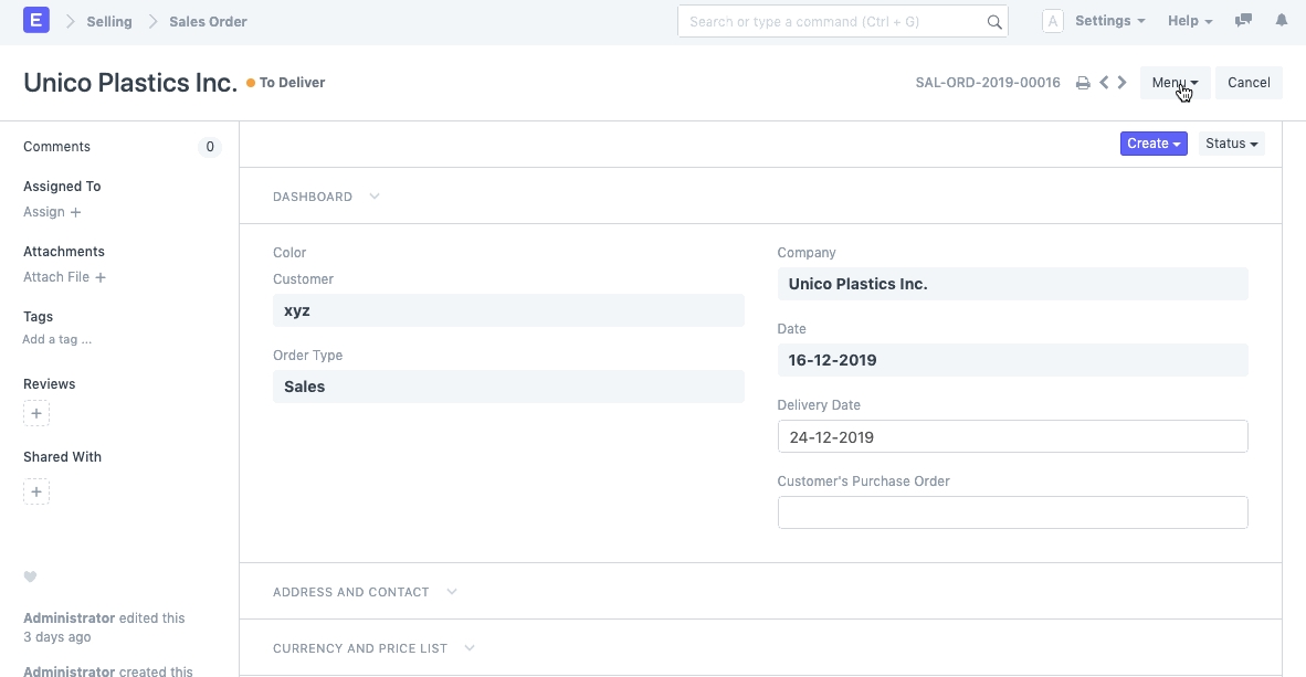 E.g., if you want to check, which Sales Invoices are linked to your Sales Order, you can check the 'Links' from the dropdown menu. However, the information about the Quotation with which this Sales Order has been linked shall be present within the Document itself.