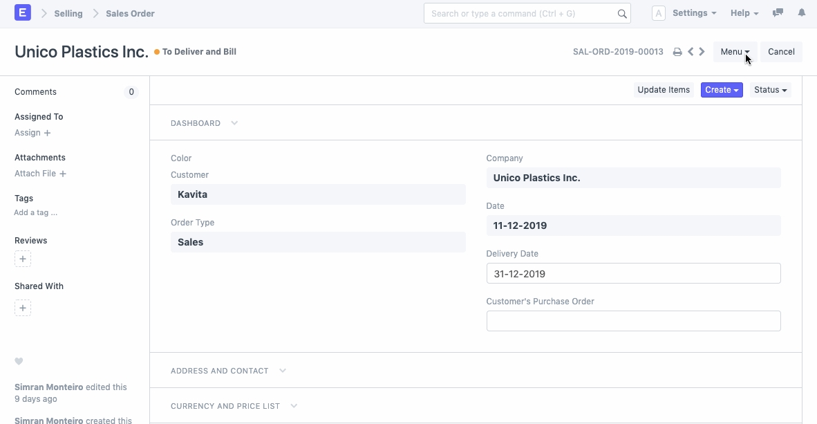 Since the new Sales Order will have all the details the same as that of the original Sales order, the supplier can simply open the original one and 'Duplicate' the order. The values of the original document will get updated as it is in the new Sales Order. Any changes, if required can be made thereafter.