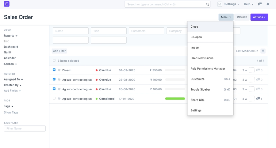 However, sometimes, you might want to close multiple Sales Orders in one go. To do so, follow the below steps: