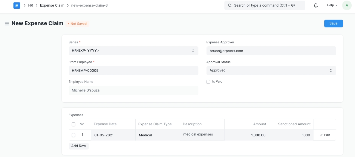 Expense Claim Approver can update the “Sanctioned Amounts” against Claimed Amount of an Employee. If submitting, Approval Status should be submitted to Approved or Rejected. If Approved, then Expense Claim gets submitted. If rejected, then Expense Approver's comments can be added in the Comments section explaining why the claim was approved or rejected.