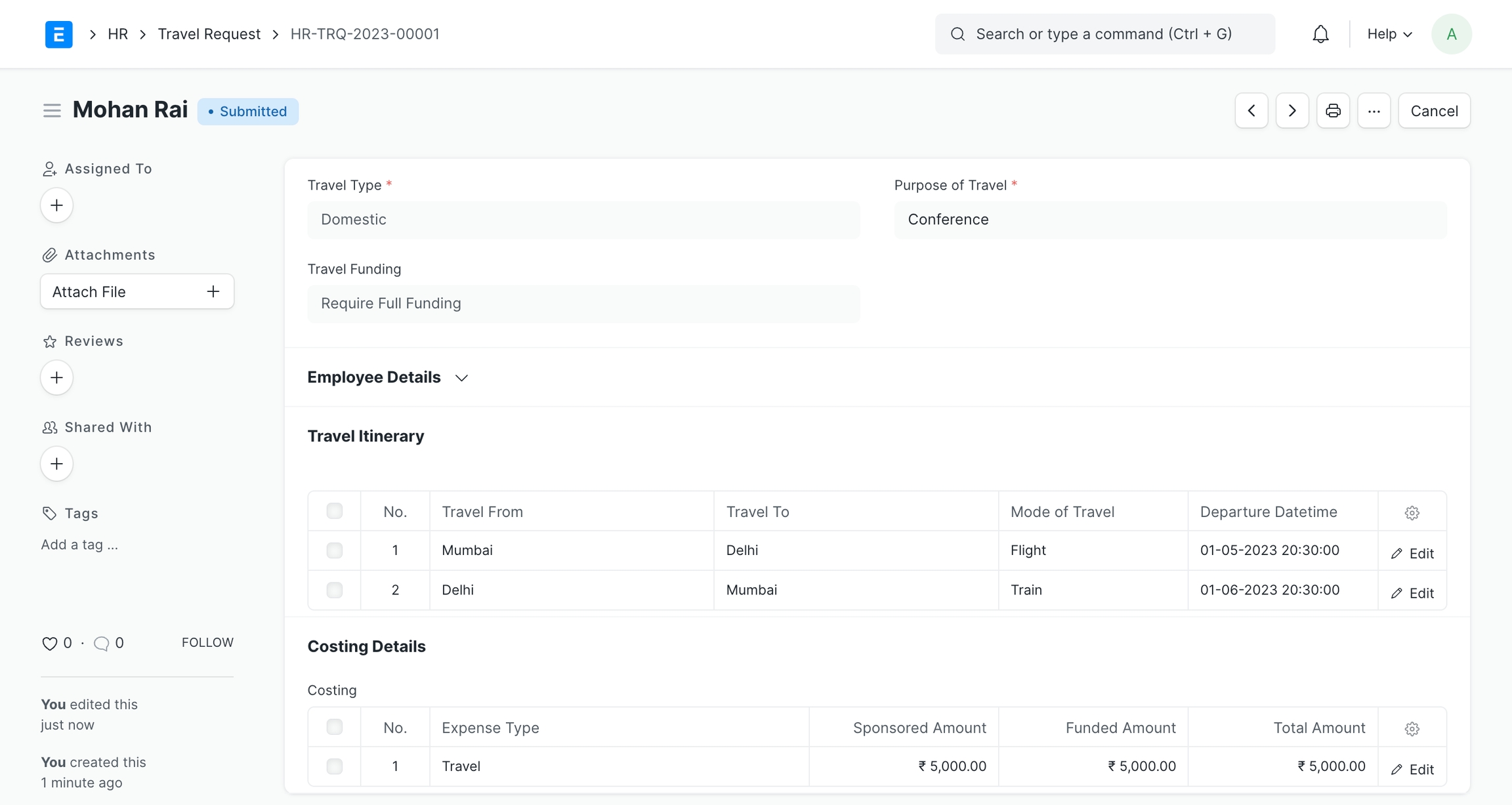 You can also mention the Travel Itinerary as well as the costs involved for the trip. Employees can also check Travel Advance Required