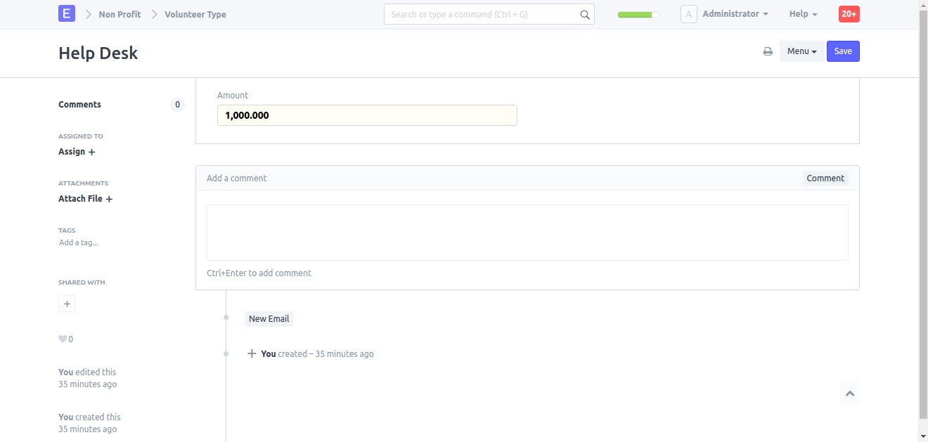 Amount: If your Volunteering are free you should enter 0 (zero) in this field. Otherwise you should enter the amount that must be paid to the volunteer.