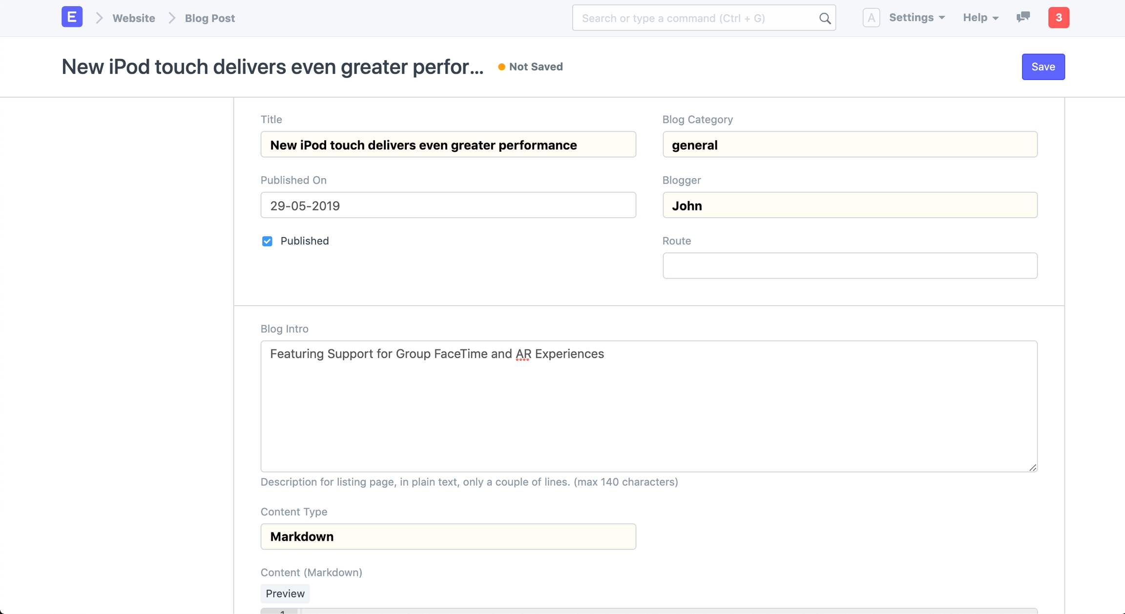 To access the Blog Post, go to: > Home > Website > Blog > Blog Post
