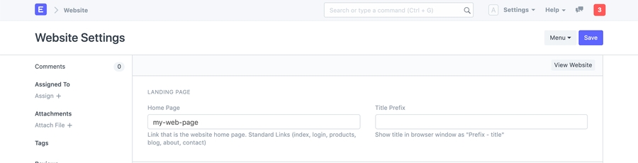 Go to Website > Setup > Website Settings.